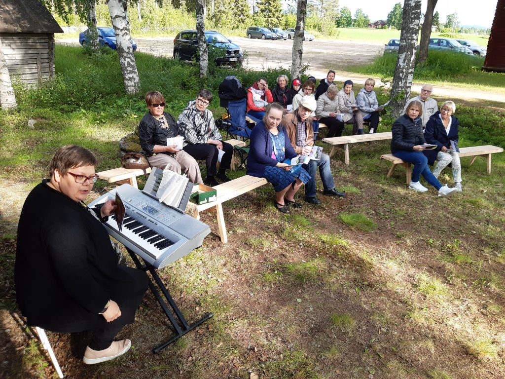 Suvilinnun lauluja laulethiin viimevuotisseen taphaan museon pihala. Tästähän vaikuttaa tulevan mukava perinne. Otamako ens vuona taas uusiksi?
