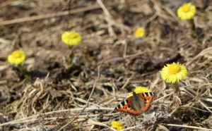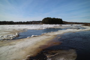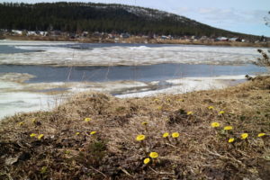 Joki alkaa paikoin auveta. Joku tiesi sanoa, että viime vuona jäät lähti 3. toukokuuta. Rantatörmälä oli jo uutta elämää!