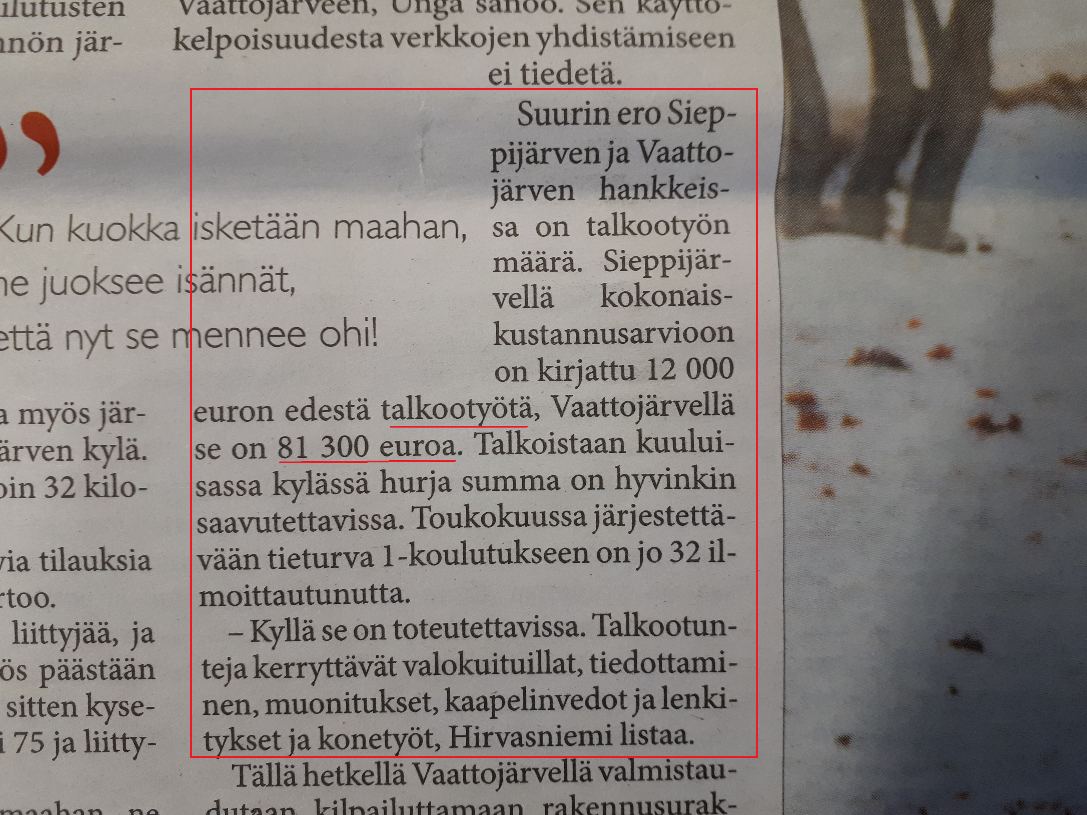 | Kyläyhdistyksen vuosittaiset tulot | 1500 | Nykyisellään, kun yhdistyksellä ei ole ollut suuria kuluja | ||||||||